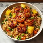 A vibrant and flavorful Pineapple Shrimp Fried Rice combining juicy shrimp, sweet pineapple chunks, and colorful vegetables all stir-fried to perfection. This quick and easy recipe brings together comforting flavors in just 25 minutes, perfect for a satisfying weeknight meal.