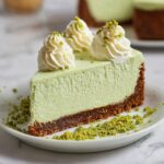Enhance your Pistachio Cheesecake Recipe by adding fresh mint leaves or a drizzle of white chocolate for extra sweetness and visual appeal. You can also dust a pinch of powdered sugar or add a few whole pistachios for a rustic touch that elevates the presentation without overwhelming the delicate pistachio flavor.
