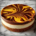 This Pumpkin Chocolate Swirl Cheesecake is a decadent dessert combining the creamy richness of classic cheesecake with festive pumpkin spices and a luscious chocolate swirl. Perfect for fall gatherings or holiday celebrations, it features a graham cracker crust, a spiced pumpkin cheesecake filling, and a dramatic chocolate swirl for a beautiful and delicious treat.