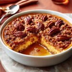 This Pumpkin Pecan Cobbler is a warm, comforting dessert perfect for fall. Featuring a spiced pumpkin batter topped with a sweet pecan streusel and a gooey, pudding-like layer beneath, this cobbler offers a delightful mix of textures and flavors. Served warm and optionally topped with vanilla ice cream or whipped cream, it’s an irresistible treat for autumn gatherings and holiday dinners.