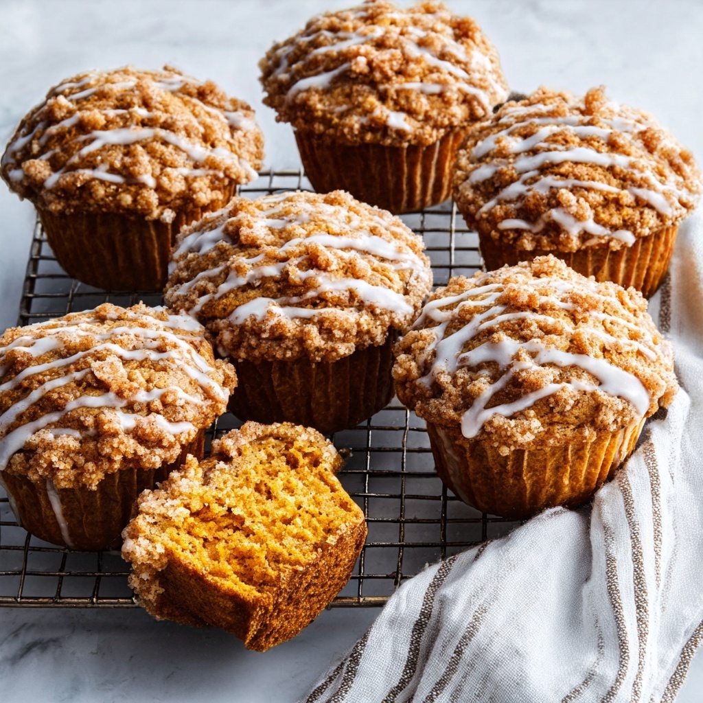 Delight in these moist and flavorful Pumpkin Streusel Muffins, perfect for breakfast or dessert. Featuring a spiced pumpkin batter topped with a crunchy cinnamon streusel and an optional sweet glaze, they capture the essence of fall in every bite.