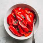 This Roasted Red Pepper Salad is a vibrant and flavorful Mediterranean-inspired dish featuring charred and peeled red bell peppers tossed in a tangy olive oil and red wine vinegar dressing with garlic, oregano, and fresh parsley. Perfect as a light side dish or appetizer, it can be served chilled or at room temperature and optionally garnished with feta cheese or olives.