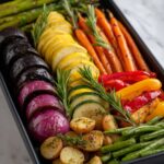 Pop the tray into the preheated oven and roast for 25 to 30 minutes, stirring halfway through. You want your vegetables tender but still with a little bite and some caramelized spots. The roasting process deepens their natural flavors and creates a lovely balance between softness and char.