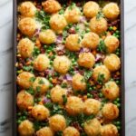 If you don’t have tater tots on hand, try frozen hash browns or even thin potato slices that you bake until crispy. They’ll give you a similar crunchy topping experience.