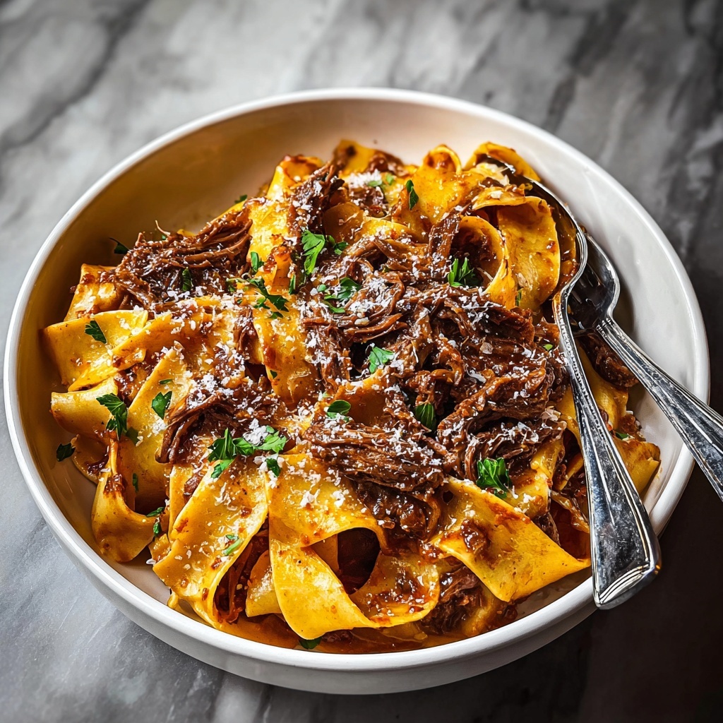 Once the short ribs are tender and the sauce is luscious, remove the ribs and shred the meat into bite-sized pieces. Return the shredded beef to the pot and give it a good stir so the meat soaks up any remaining sauce. Now your Short Rib Ragu Recipe is ready to be enjoyed over pasta, creamy polenta, or your favorite comforting base. Don’t forget to garnish with fresh parsley for a burst of color and freshness.