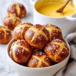 These Soft Pretzel Bites are a classic snack perfect for sharing. Made from a simple yeast dough, boiled briefly in a baking soda bath, and baked to golden perfection, they boast a chewy interior and a crispy, salted exterior. Ideal for dipping in mustard, cheese sauce, or your favorite condiment, these pretzel bites are sure to impress both kids and adults alike.