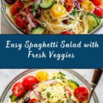 Begin by cooking the spaghetti according to the package instructions until al dente. Drain it well, then rinse with cold water to stop the cooking process and cool it quickly. Setting the pasta aside to cool is crucial so it doesn’t wilt the fresh veggies once combined.