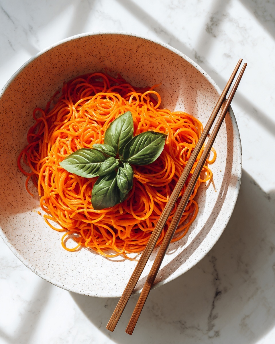 The beauty of this recipe lies in its simplicity — a handful of staple ingredients come together to create a dish that’s rich in taste, texture, and color. Each component plays an important role, from the sweetness and crunch of fresh carrots to the warm, aromatic notes of sesame oil and the thrilling kick of Korean red pepper flakes.
