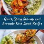 A vibrant and healthy Spicy Shrimp and Avocado Rice Bowl featuring marinated shrimp cooked to perfection and served over fluffy jasmine or brown rice, topped with fresh avocado, crunchy veggies, and a zesty lime drizzle for a quick and flavorful Asian-inspired meal.
