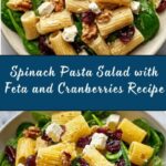 A refreshing and colorful Spinach Pasta Salad featuring tender rotini pasta, fresh baby spinach, tangy feta cheese, sweet dried cranberries, and a zesty homemade dressing. This salad is perfect for a light lunch or a crowd-pleasing side dish, combining vibrant flavors and textures in every bite.