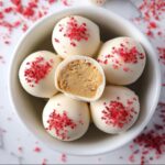 3. Dip in White Chocolate: Melt the white chocolate wafers according to package instructions until smooth and glossy. Using a fork, dip each frozen truffle into the melted chocolate, allowing any excess to drip off before placing it back onto the baking sheet. If desired, immediately add sprinkles before the chocolate sets. Once all truffles are coated and decorated, refrigerate until ready to serve.