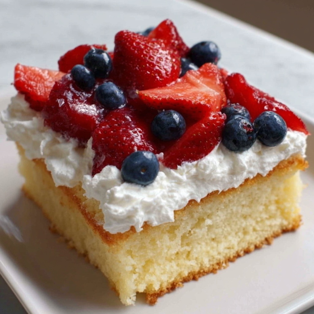 - Add Toppings: Before serving, spread the whipped topping over the chilled cake and garnish with fresh mixed berries for an attractive and tasty finish.
