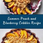 This Summer Peach and Blueberry Cobbler combines juicy peaches and sweet blueberries with a lightly sweetened biscuit topping, baked to golden perfection. A classic dessert perfect for showcasing seasonal fruits, served warm with a scoop of ice cream for a delightful treat.