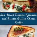 This Sun-Dried Tomato, Spinach, and Ricotta Grilled Cheese is a flavorful and comforting sandwich combining creamy ricotta, melted mozzarella, savory sun-dried tomatoes, and fresh spinach between crispy, buttery sourdough bread slices. Perfect for a satisfying lunch or main course, this Italian-inspired grilled cheese offers rich textures and bold flavors in every bite.