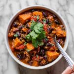This hearty and nutritious Sweet Potato & Black Bean Chili is a flavorful vegetarian dish packed with comforting sweetness from sweet potatoes and the robust taste of black beans. Perfect for a wholesome meal, it combines warm spices and fresh vegetables in a rich, savory broth, making it an ideal choice for a cozy dinner or meal prep.