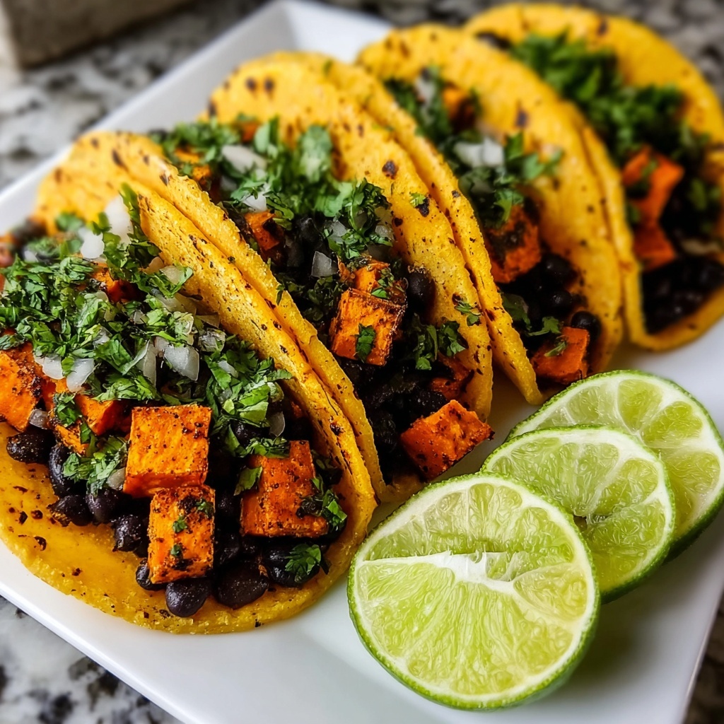 These Sweet Potato Black Bean Tacos are a vibrant, flavorful vegetarian dish combining roasted sweet potatoes seasoned with cumin and chili powder, tender black beans, and fresh garnishes. Perfect for a quick, nutritious meal packed with bold flavors and colorful ingredients.
