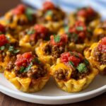 Taco Ranch Bites are flavorful, bite-sized appetizers combining seasoned ground beef, melted cheeses, and a zesty ranch sauce, all nestled in crispy wonton cups. Perfect for parties or game day snacks, these easy-to-make mini tacos deliver a delicious blend of Tex-Mex flavors in every crisp bite.