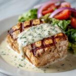 Return the seared tuna steaks to the skillet briefly to warm them through if desired, or simply plate them and generously spoon the creamy garlic sauce over the top. Serve each steak alongside a hearty helping of the vibrant salad. This final assembly brings all the elements of the Tuna Steaks with Creamy Garlic Sauce & Salad Recipe together for a feast that’s as pleasing to the eye as it is to the palate.