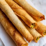 - Seal the Rolls: Brush the edge of the dough with egg white to seal the rolls securely, ensuring they don’t open during frying. Repeat with all dough strips and filling.