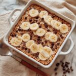 - Prepare Baking Dish: Pour the batter into the prepared baking dish and spread it out evenly. Optionally, add extra chocolate chips and banana slices on top for more flavor and decoration.